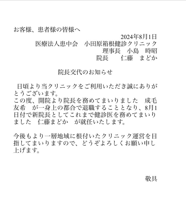 【院長交代のお知らせ】